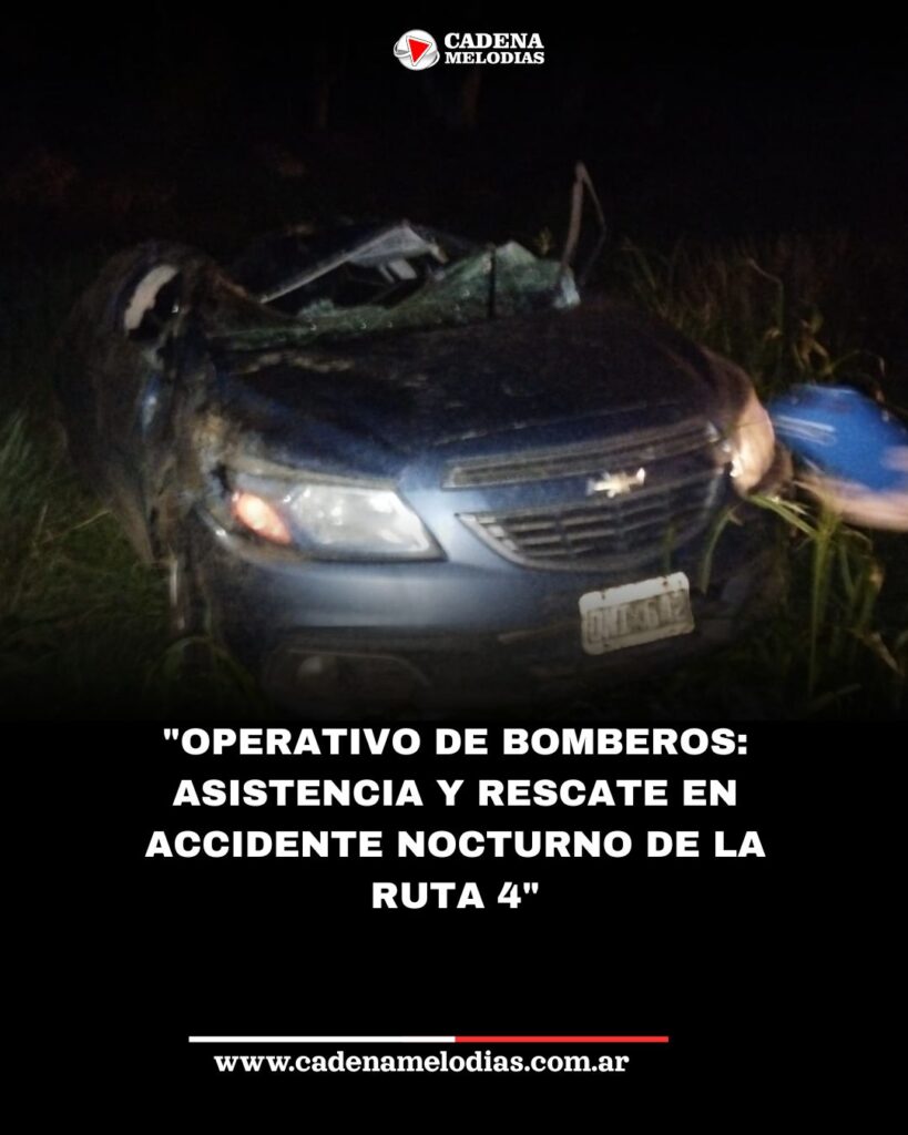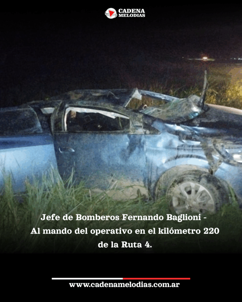 El Jefe del Cuerpo Activo, Fernando Baglioni, informó que en la madrugada de hoy se produjo un siniestro en el kilómetro 220 de la Ruta 4. Un automóvil se volcó, resultando su único ocupante lesionado. El operativo de rescate y remoción del vehículo se extendió por casi dos horas.