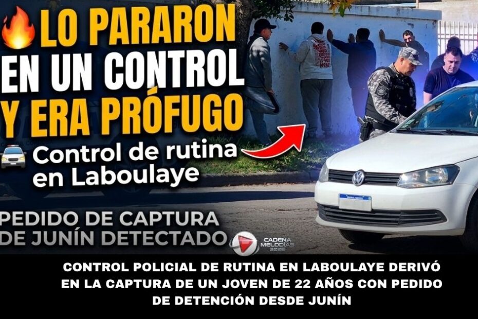 Cerca de las 11 de la mañana de hoy, efectivos que realizaban tareas preventivas en la vía pública observaron un Volkswagen Gol Trend color blanco con tres ocupantes. Al no ser reconocidos como vecinos de Laboulaye, los agentes procedieron a solicitar sus documentos de identidad. Gracias a los servicios policiales de comunicación y acceso a bases de datos nacionales, se estableció que uno de los individuos, de 22 años, contaba con un pedido de captura vigente por parte de la Fiscalía de Junín, en Buenos Aires.