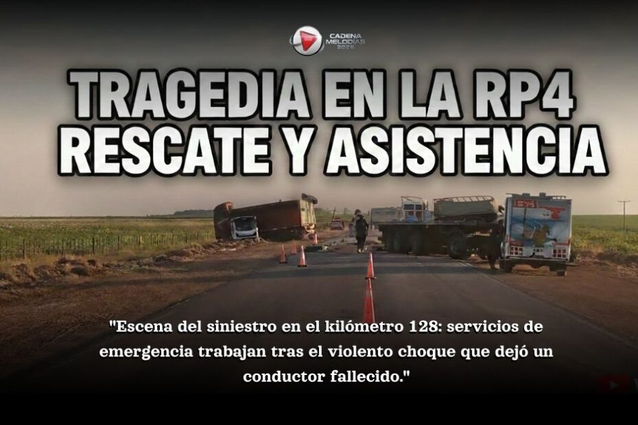 Palabras clave: Accidente camiones Córdoba, choque frontal Ruta 4, La Carlota accidente, siniestro vial fatal, conductor fallecido Las Higueras, herido crítico San Basilio, tránsito pesado accidente, seguridad vial, Ruta Provincial 4, bomberos La Carlota, Policía Caminera, Cadena Melodías noticias.