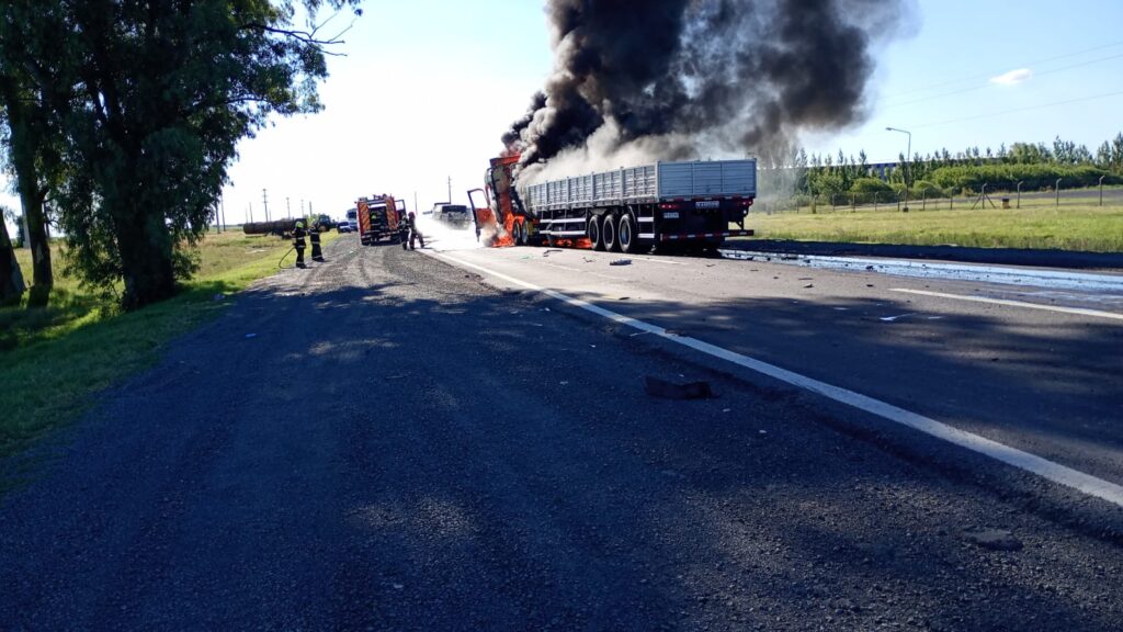 Según los primeros reportes policiales, colisionaron dos camiones de gran porte. La violencia del impacto provocó que la cabina de uno de los vehículos se incendiara de manera inmediata.