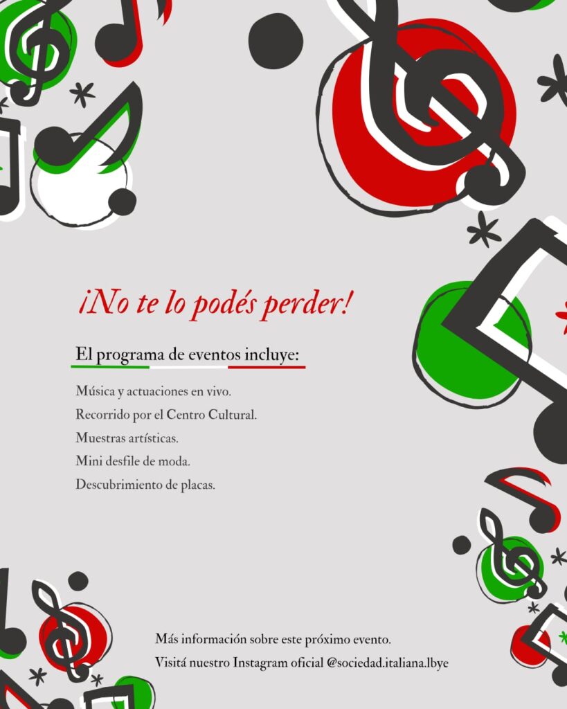• Reservas: Instagram @sociedad.italiana.lbye o en el negocio de Aldo Paschetta