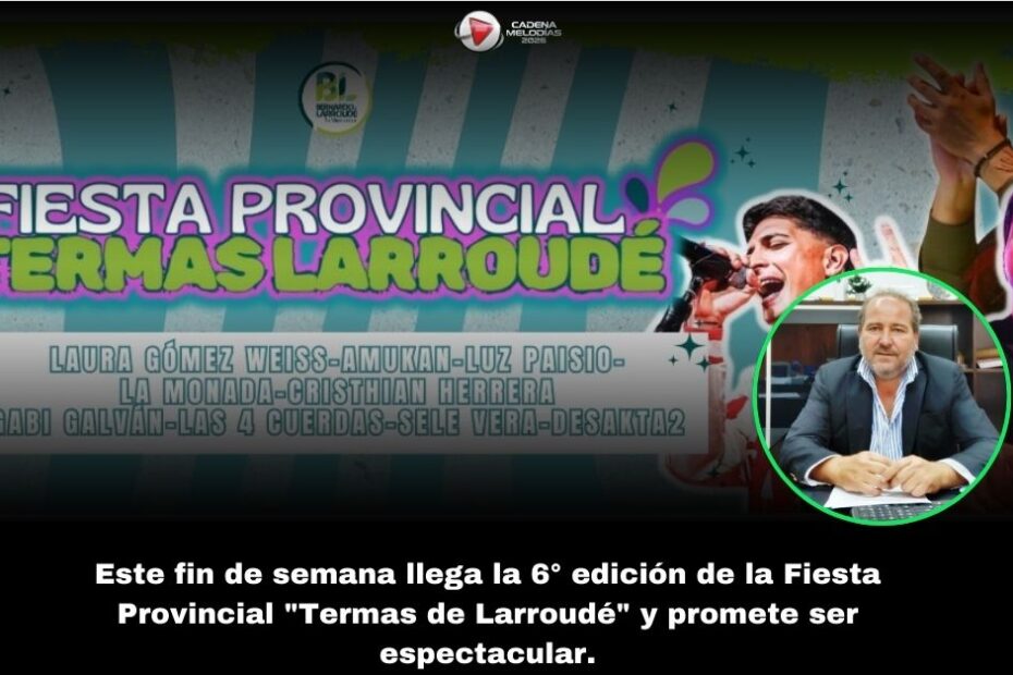 En una entrevista exclusiva para Cadena Melodías, el intendente de Larroudé, José Luis Gallotti, compartió todos los detalles de la sexta edición de la Fiesta Provincial «Termas de Larroudé», que se desarrollará este viernes 9 y sábado 10 en el parque municipal de la localidad pampeana. Con un pronóstico climático favorable, la expectativa es máxima para este evento que ha logrado posicionarse a nivel regional.