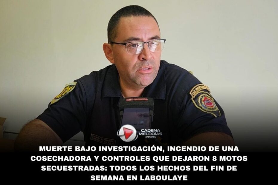 La Departamental de Laboulaye informó a través de los micrófonos de Cadena melodías los detalles del accionar policial durante el fin de semana. El comisario licenciado Ezequiel Fernández detalló hechos de gravedad que abarcan desde un fallecimiento bajo investigación hasta procedimientos por infracciones al Código de Convivencia, pasando por un incendio rural y la aprehensión de un menor por ilícitos.