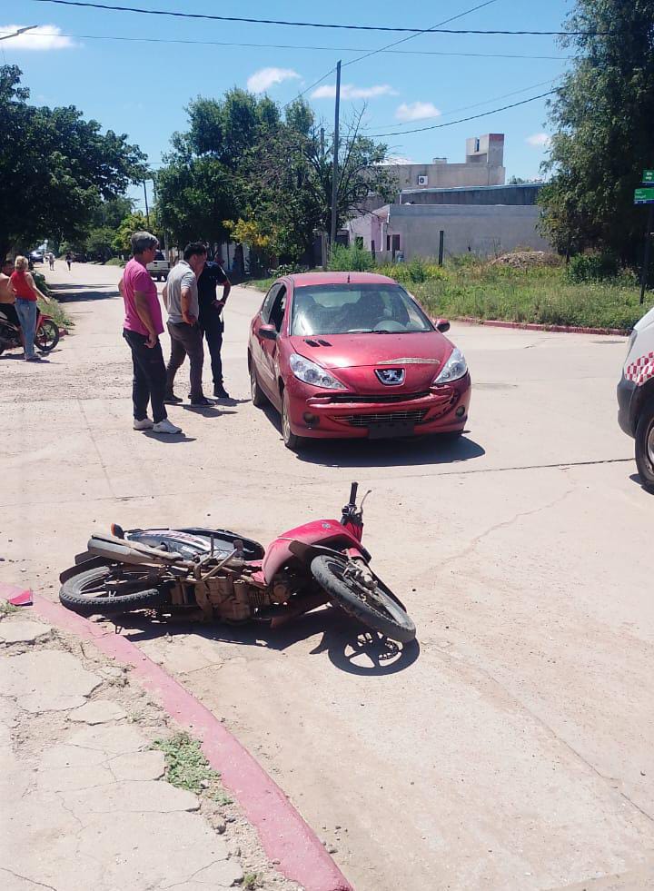 El mismo día, a las 14:00 horas, se produjo una colisión entre una motocicleta Yamaha Crypton, conducida por una mujer de 52 años, y un automóvil Peugeot 207, al mando de un hombre de 25 años. La conductora del rodado menor sufrió lesiones de carácter leve y fue asistida en el lugar por el servicio de emergencias, para luego ser derivada al Hospital Regional. Ambos vehículos fueron secuestrados para las pericias correspondientes y las actuaciones quedaron a cargo de la Unidad Judicial.