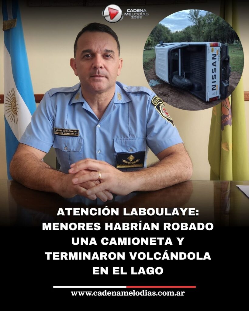 Palabras Clave: robo Laboulaye, camioneta robada, Lago Parque Municipal, Nissan Frontier, menores infractores, policía Laboulaye, Comisario Jorge Olguín, inseguridad, Secretaría Penal Juvenil, Cadena Melodías.
