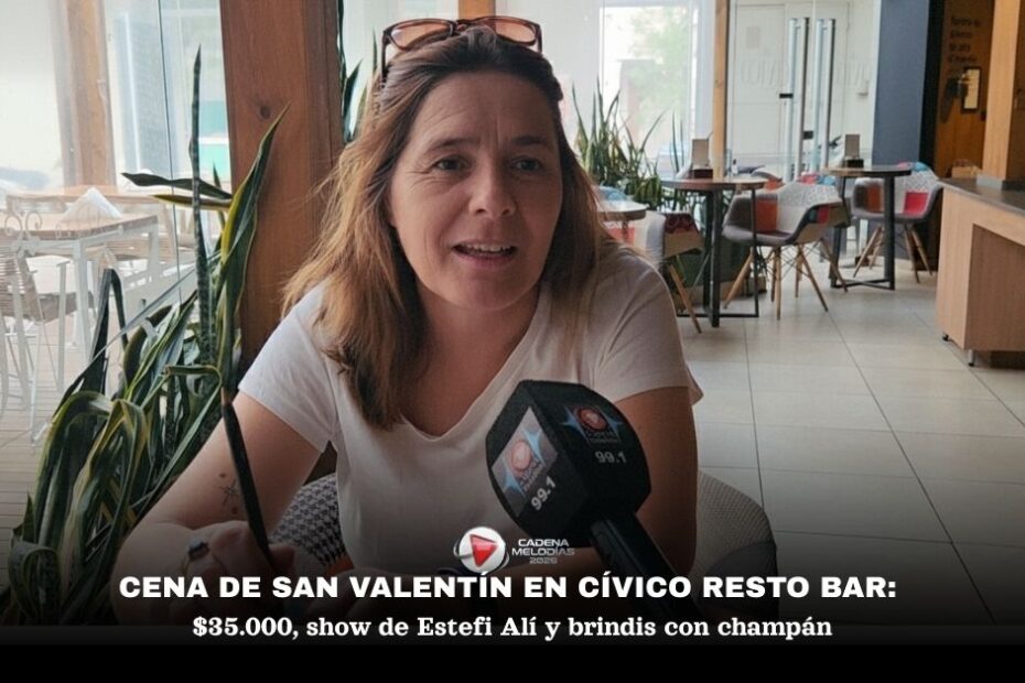 📌 Palabras clave: San Valentín 2026, Cívico Resto Bar, cena show, Estefi Alí, salidas en pareja, bondiola al verdeo, noche de los enamorados, Cadena Melodías.