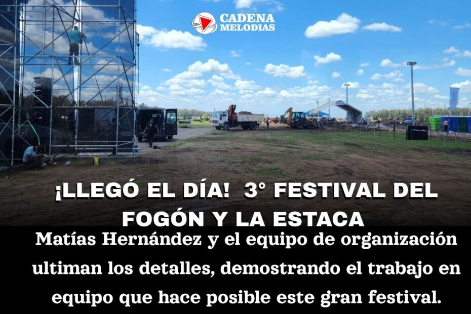 En un reporte en vivo para Cadena de Melodías, Matías Hernández, uno de los organizadores, detalló los pormenores de los preparativos finales, destacando el esfuerzo realizado para superar los inconvenientes causados por las recientes lluvias. «Todo el pueblo colabora con nosotros y, obviamente, estamos muy agradecidos», afirmó.