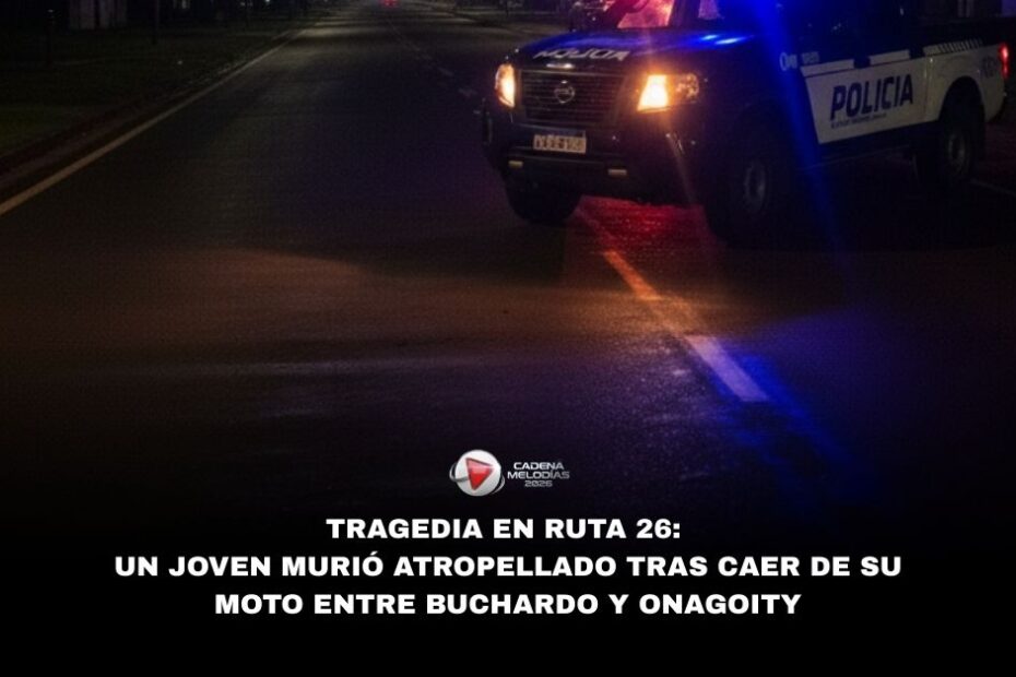 Un trágico accidente vial conmociona al sur de la provincia. El siniestro ocurrió alrededor de las 21:00 horas de ayer sobre la ruta provincial 26, en el tramo que conecta las localidades de Buchardo y Onagoity. Según las primeras informaciones, todo comenzó cuando tres jóvenes oriundos de Buchardo, que circulaban en motocicleta, perdieron el control del rodado por causas que aún son materia de investigación.